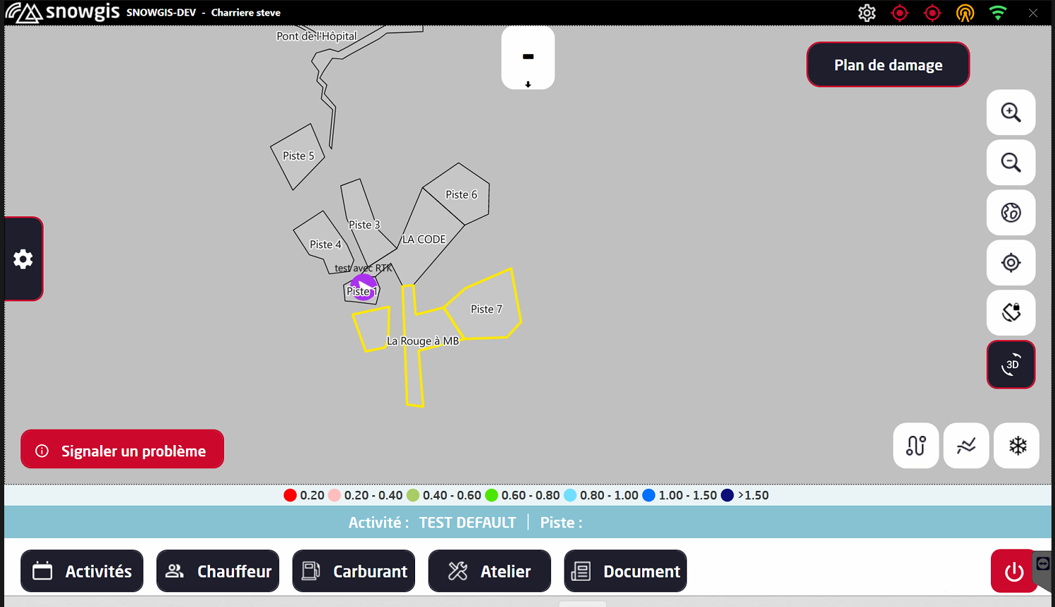 Avant de commencer à travailler, choisissez l’activité correspondant à votre tâche (damage, transfert, entretien, etc.).