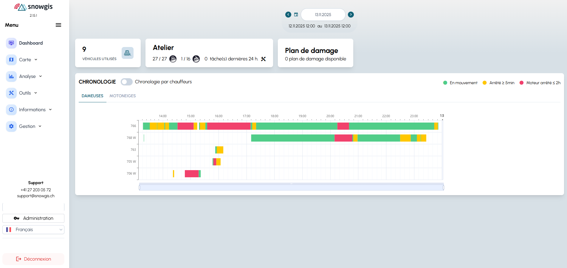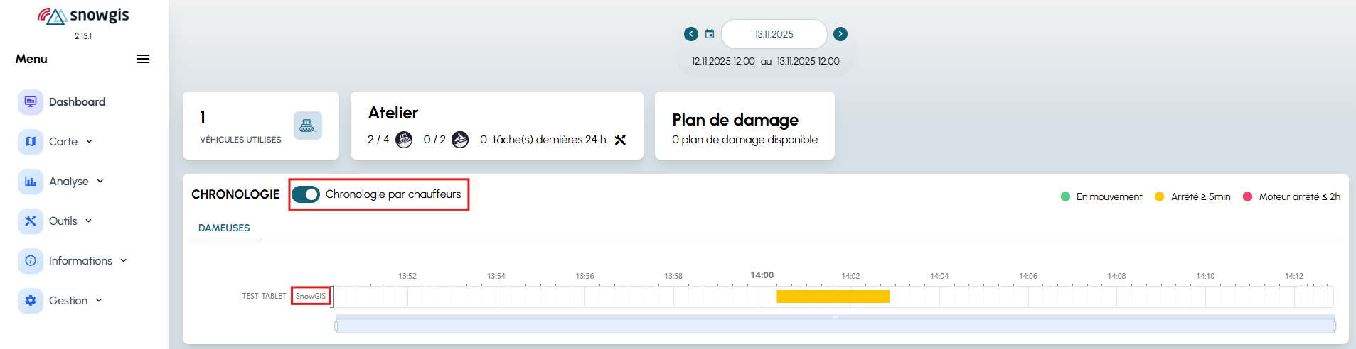 - vue chronologique des activités des véhicules pour la date sélectionnée
