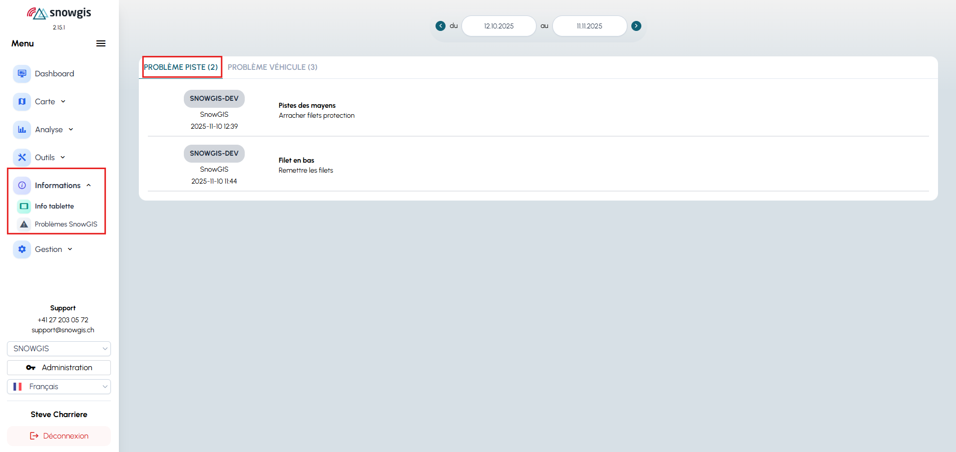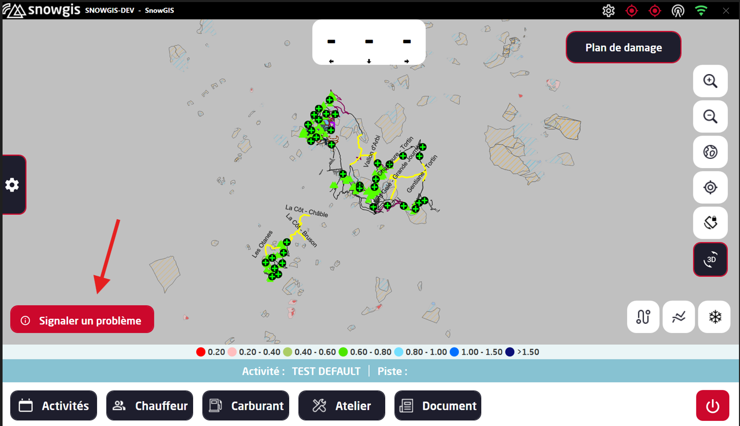 elle affiche les incidents transmis directement par les chauffeurs — qu’il s’agisse d’une panne véhicule ou d’un incident lié aux pistes.