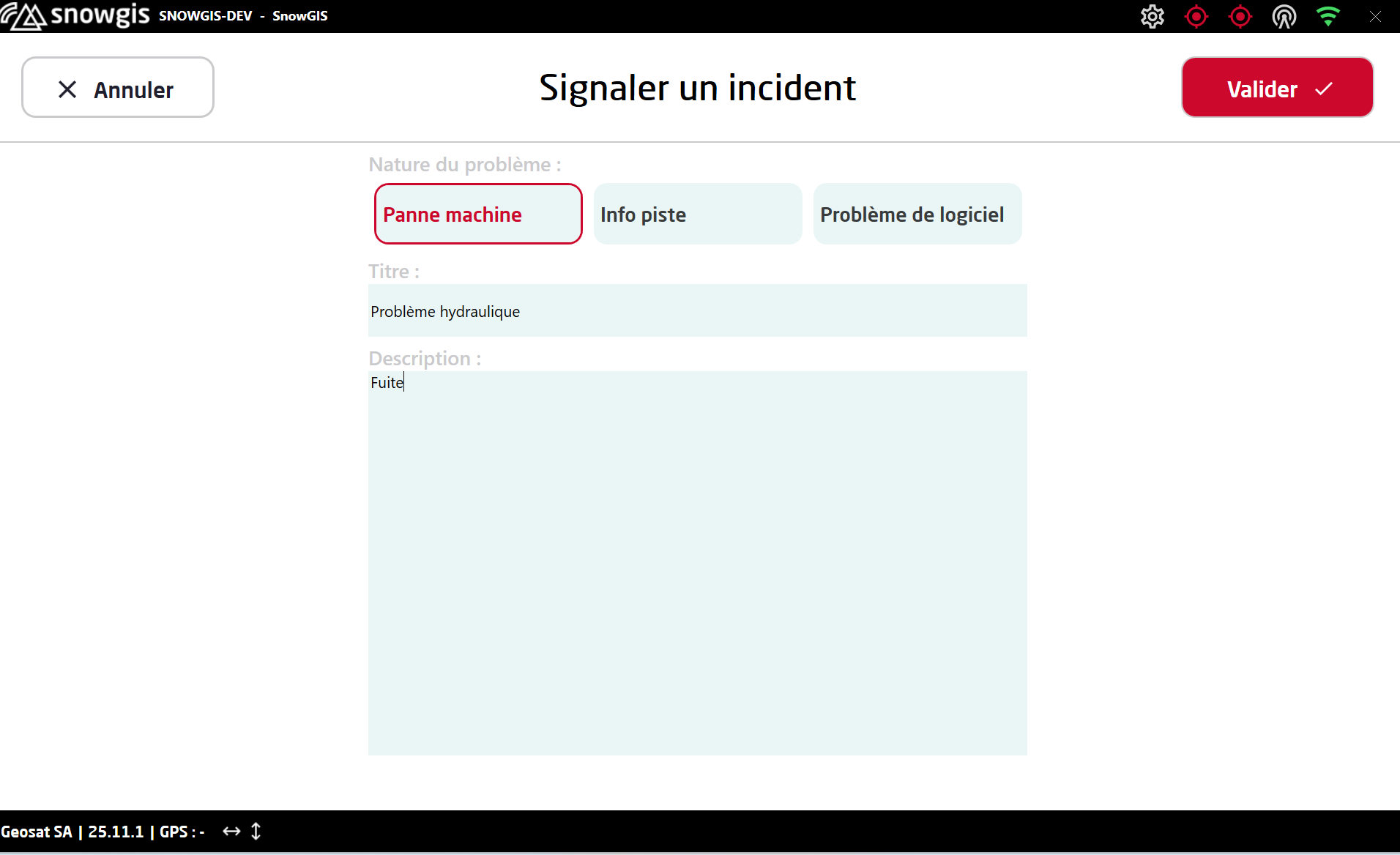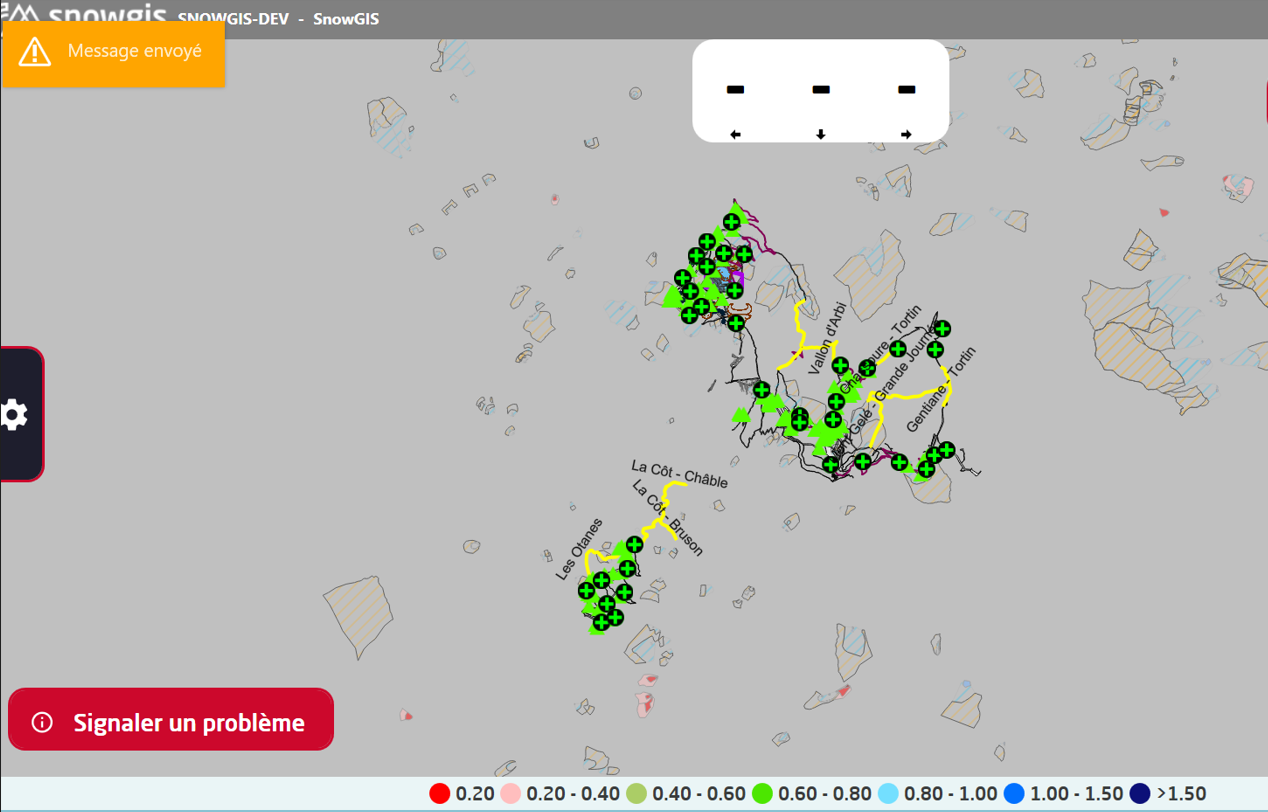 une fois validé, le message est automatiquement envoyé à SnowGIS via la connexion de la tablette.