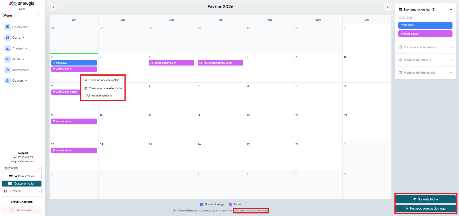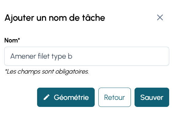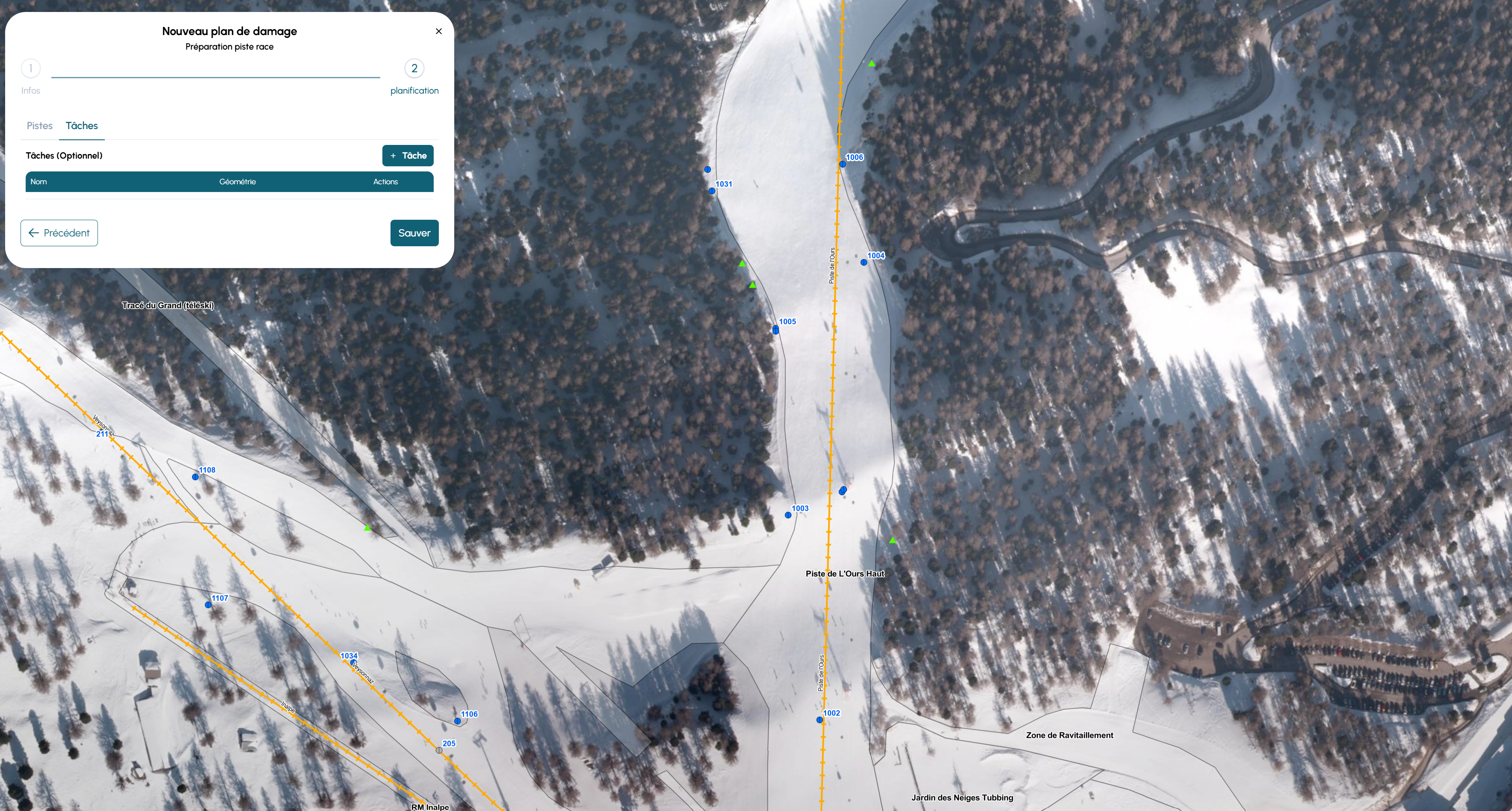 Vous pouvez ajouter des tâches spécifiques : dépôt de neige, zone à lisser, consigne, obstruction, etc.