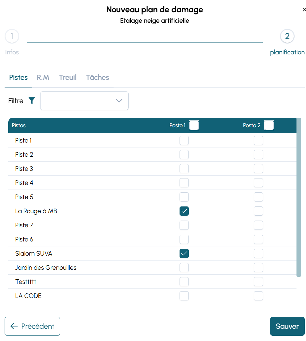 - affecter un ou deux postes (équipe 1 / équipe 2)