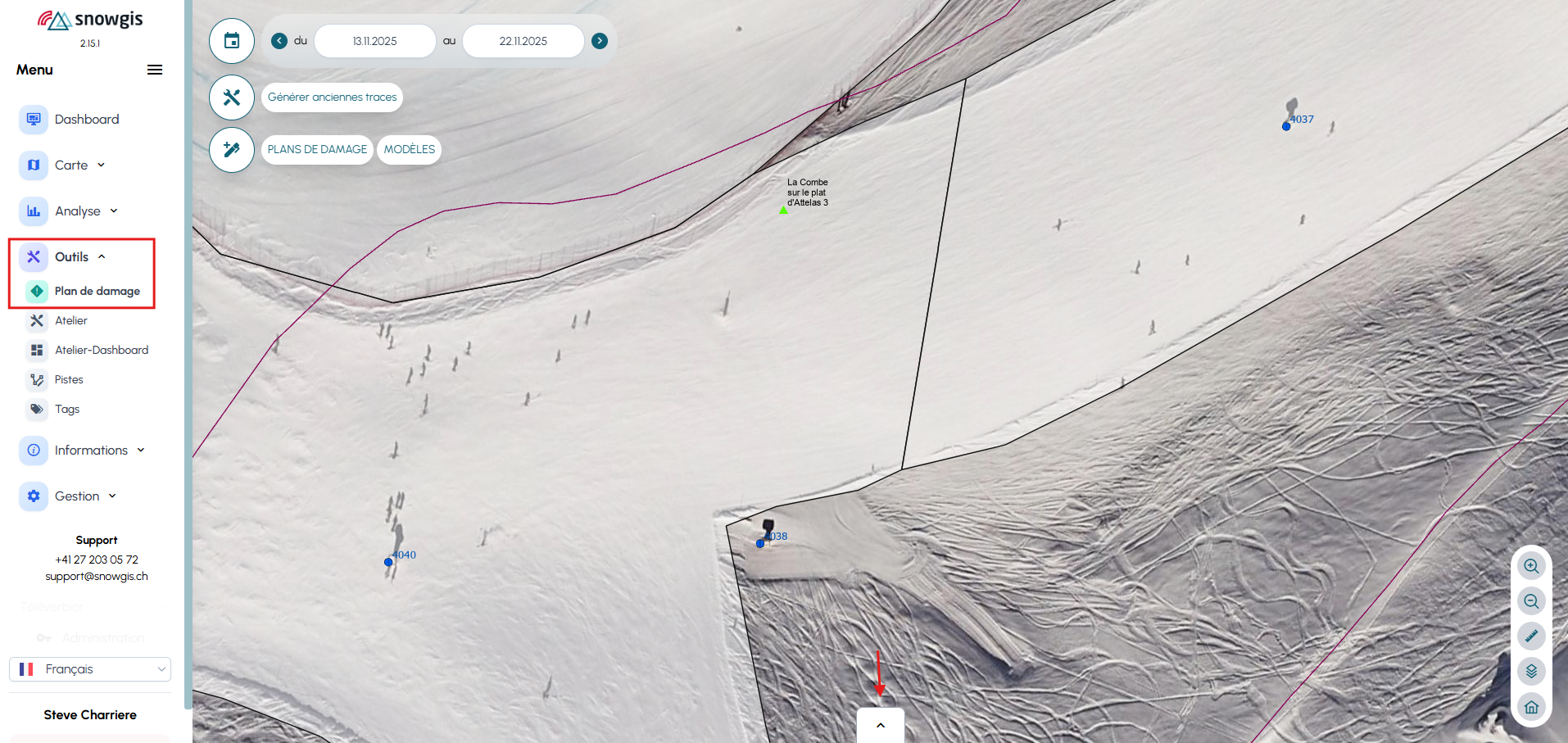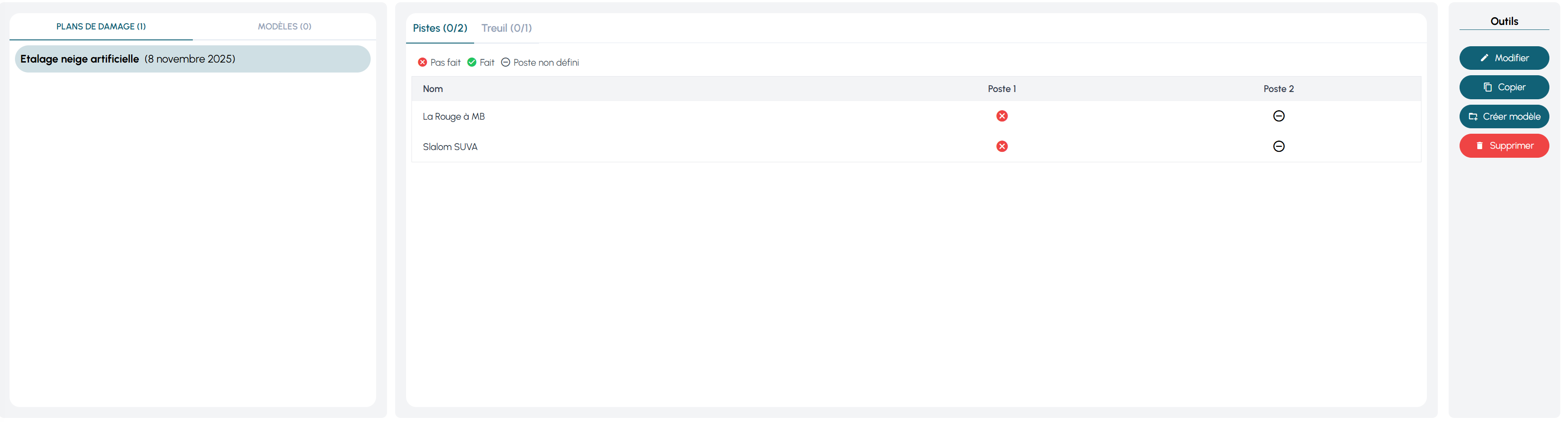 l’onglet « Outils → Plan de damage » permet de créer, organiser et suivre un plan de damage pour une période donnée.