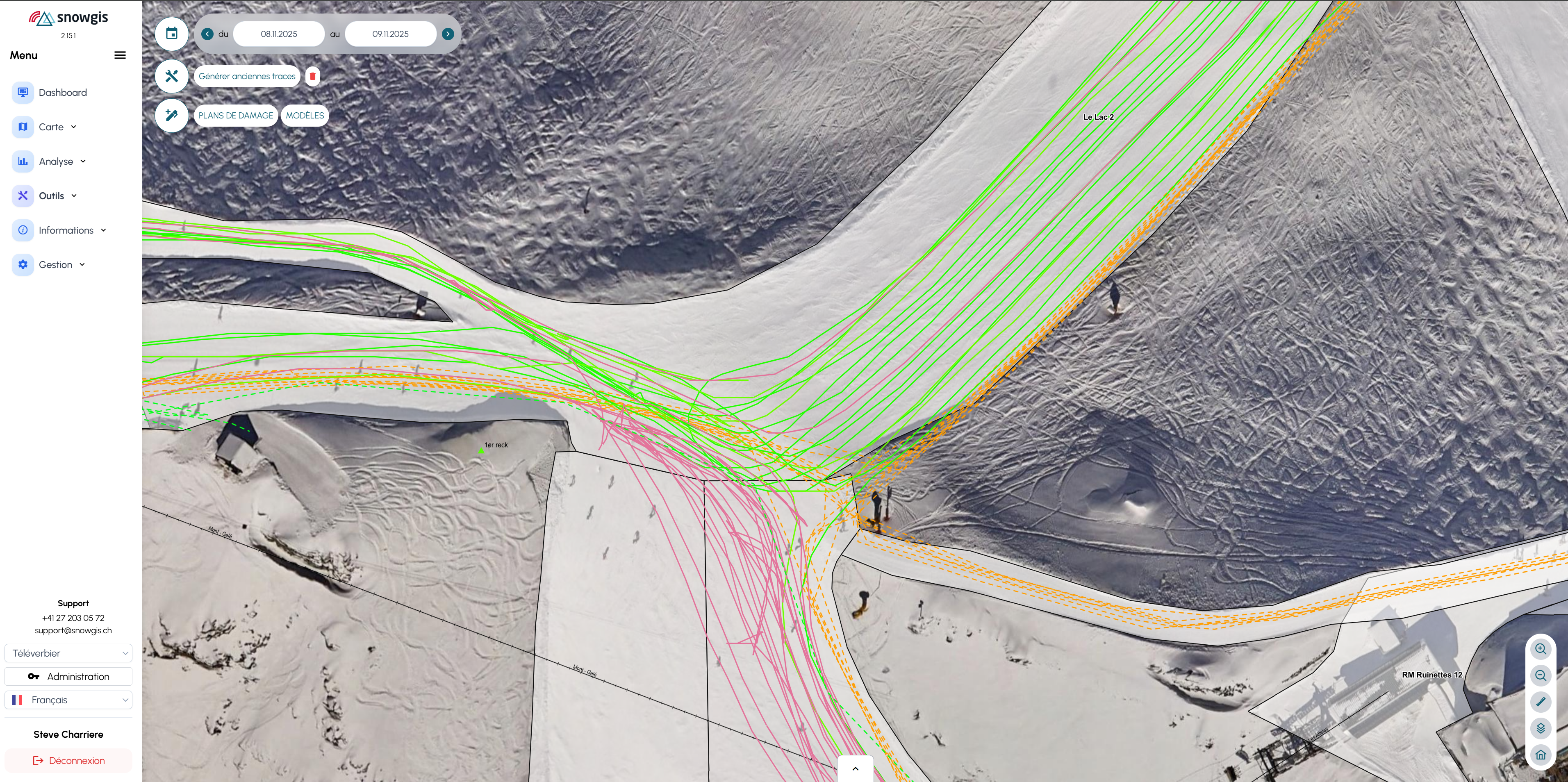 - Treuil → (RM et treuil visible que si créer dans la gestion des pistes !)
