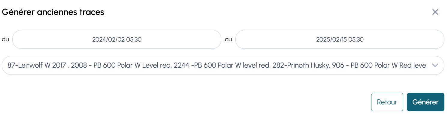 - Cliquez sur Générer anciennes traces pour afficher les traces GNSS.