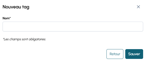 - saisissez le nom du tag dans la fenêtre « Nouveau tag » ;