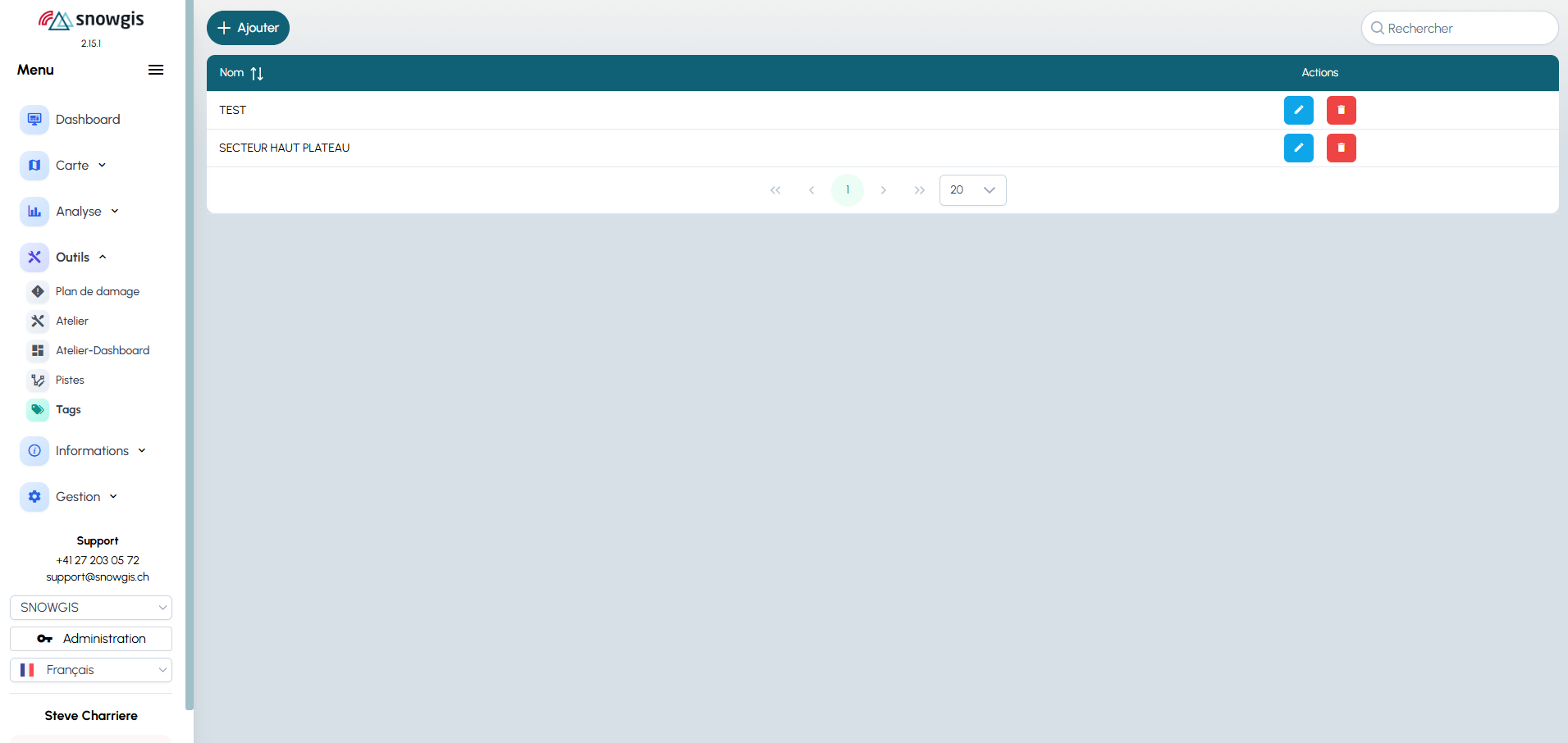 - pour modifier un tag, cliquez sur l’icône ✏️ dans la liste ;