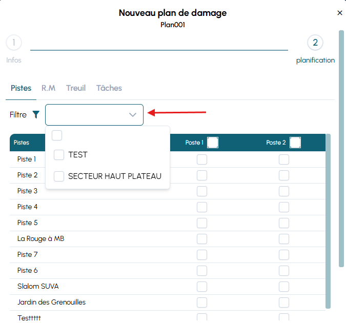 - ouvrez le module Outils → Plan de damage ;