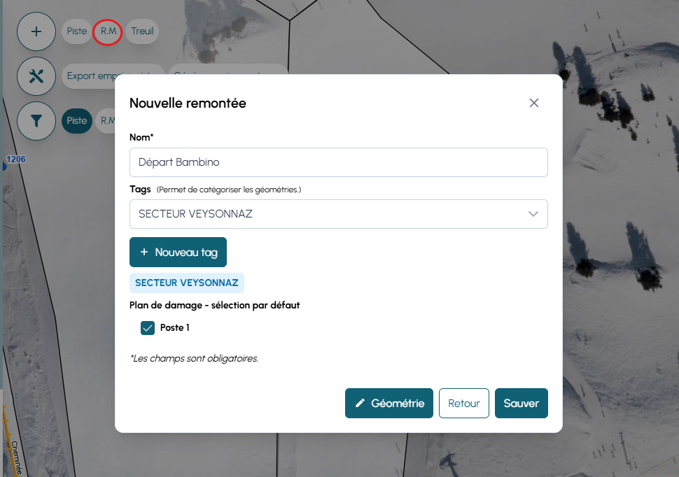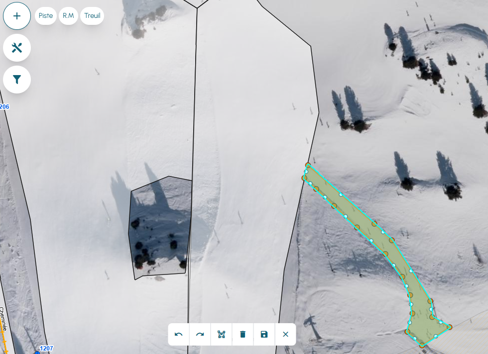 | Bouton âž• | ajouter une piste, une RM ou une zone treuil |
