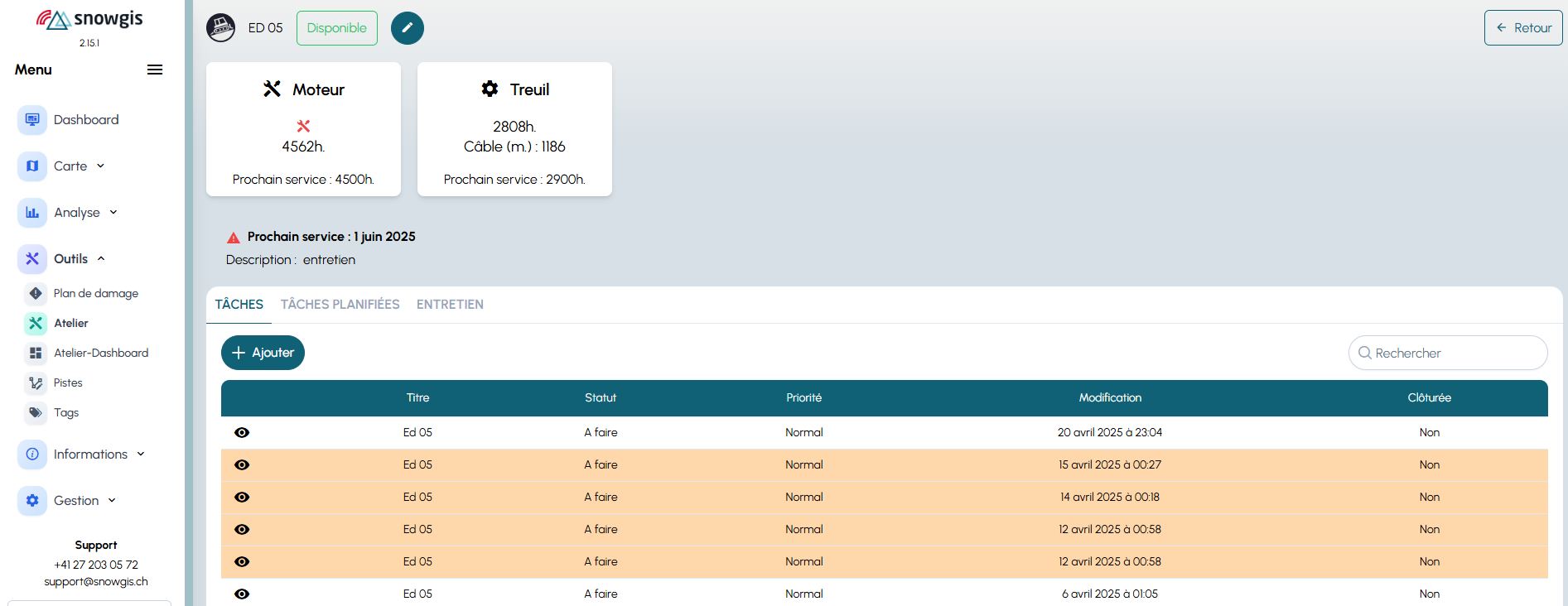- Service treuil : seuil d’heures treuil à atteindre.