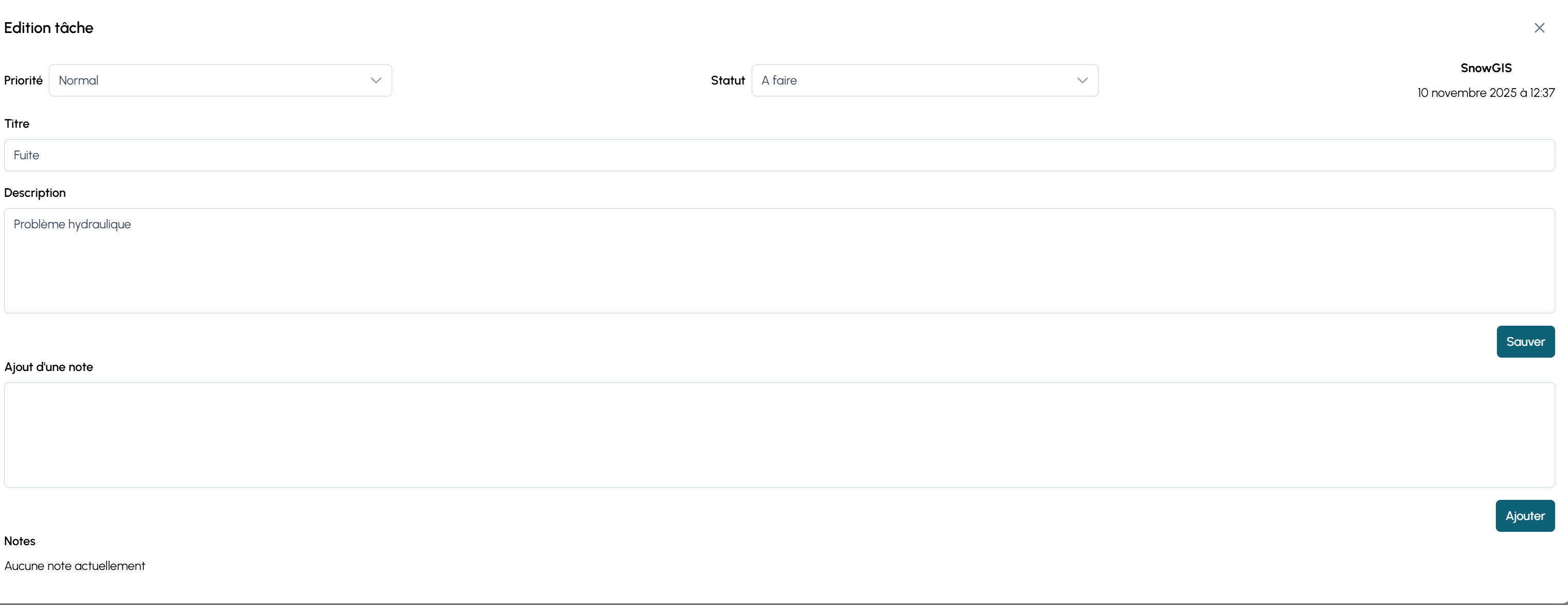 - d’ajouter une note (ex. diagnostic, pièces commandées, observations terrain).