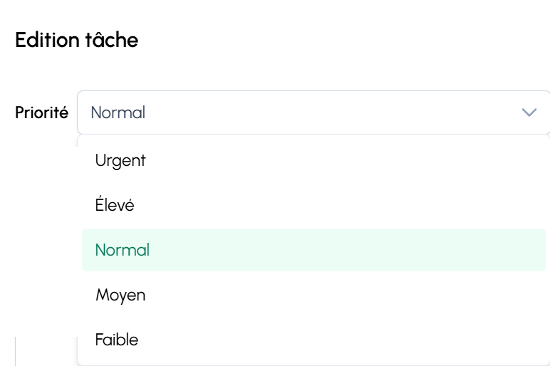 Le champ Priorité propose plusieurs niveaux, par exemple :