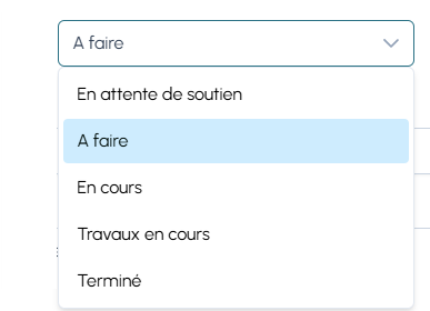 Le champ Statut permet de suivre l’avancement :