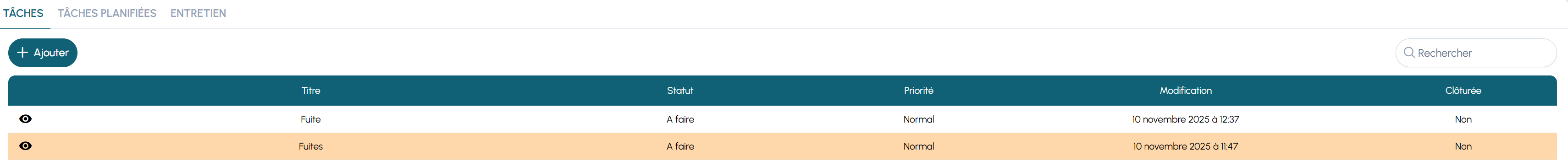6) Les trois onglets : Tâches, Tâches planifiées, Entretien ​